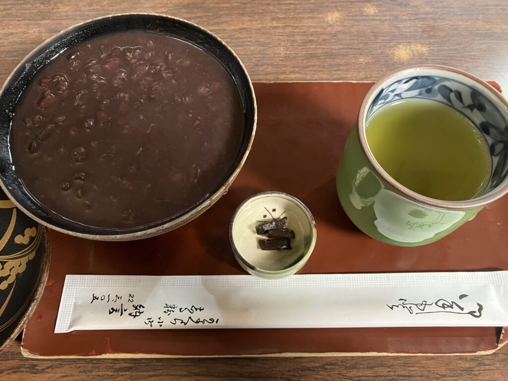 店内のお客さんが田舎しるこを頼んでいる声がひっきりなしに聞こえています。